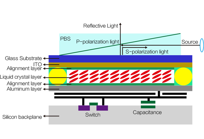 The monocrystalline silicon backplane has high electron mobility, slim circuitry and thus a high ‘fill factor’. The reflective nature of LCoS also negates the significant loss caused when light is required to pass through the panel. Therefore, LCoS devices possess high efficacy, and can achieve high brightness with less power usage.